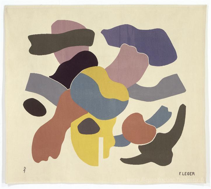 Nous vous proposons une reproduction artisanale sur toile du célèbre tableau 'Les formes sur fond blanc (sur fond bleu dans le cadeau)' de Fernand Leger, provenant du Musée de la Reproduction.