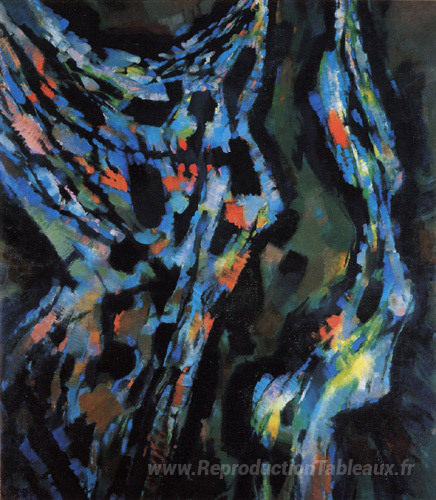 Nous vous proposons une reproduction artisanale sur toile du célèbre tableau 'Les Ténèbres' de Alfred Manessier, provenant du Musée de la Reproduction.