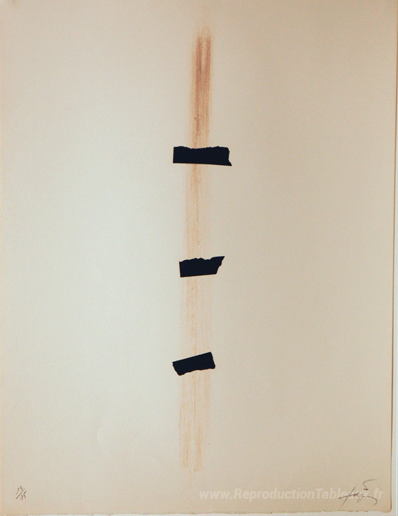 Nous vous proposons une reproduction artisanale sur toile du célèbre tableau 'Les Trois Noirs' de Antoni Tapies, provenant du Musée de la Reproduction.