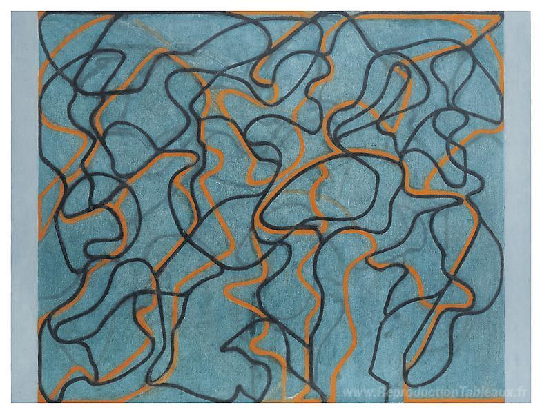 Nous vous proposons une reproduction artisanale sur toile du célèbre tableau 'Lettre sur les rochers # 3, Blue Ground' de Brice Marden, provenant du Musée de la Reproduction.