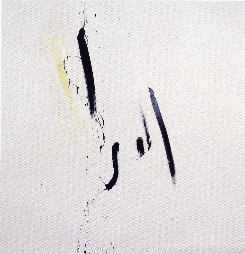 Nous vous proposons une reproduction artisanale sur toile du célèbre tableau 'Levez le doigt et tout L'Univers est là' de Jean Degottex, provenant du Musée de la Reproduction.