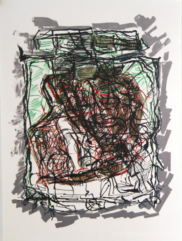 Nous vous proposons une reproduction artisanale sur toile du célèbre tableau 'Lithographie 1976' de Jean-Paul Riopelle, provenant du Musée de la Reproduction.