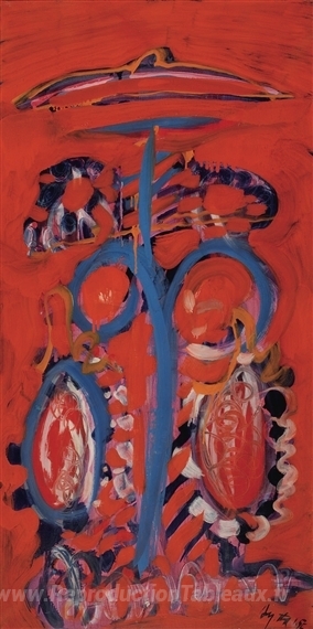 Nous vous proposons une reproduction artisanale sur toile du célèbre tableau 'L'?le Rouge' de Jean Degottex, provenant du Musée de la Reproduction.