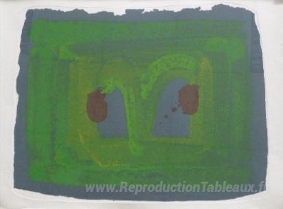 Nous vous proposons une reproduction artisanale sur toile du célèbre tableau 'Loto' de Howard Hodgkin, provenant du Musée de la Reproduction.