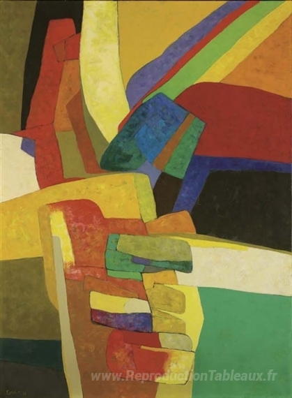 Nous vous proposons une reproduction artisanale sur toile du célèbre tableau 'Loxos' de Maurice Esteve, provenant du Musée de la Reproduction.