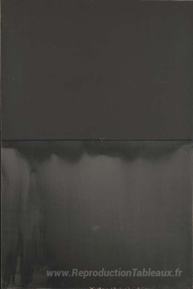 Nous vous proposons une reproduction artisanale sur toile du célèbre tableau 'Médias (vii)' de Jean Degottex, provenant du Musée de la Reproduction.