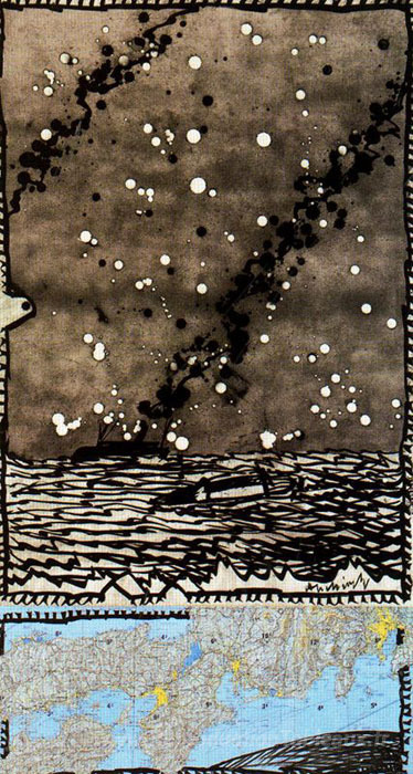 Nous vous proposons une reproduction artisanale sur toile du célèbre tableau 'Maarseille-Yokohama' de Pierre Alechinsky, provenant du Musée de la Reproduction.