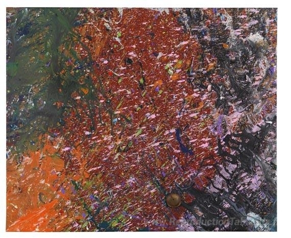 Nous vous proposons une reproduction artisanale sur toile du célèbre tableau 'MAGI 922 (collision en bouteille)' de Shozo Shimamoto, provenant du Musée de la Reproduction.