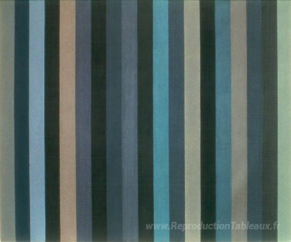 Nous vous proposons une reproduction artisanale sur toile du célèbre tableau 'Marocain minuit' de Gene Davis, provenant du Musée de la Reproduction.
