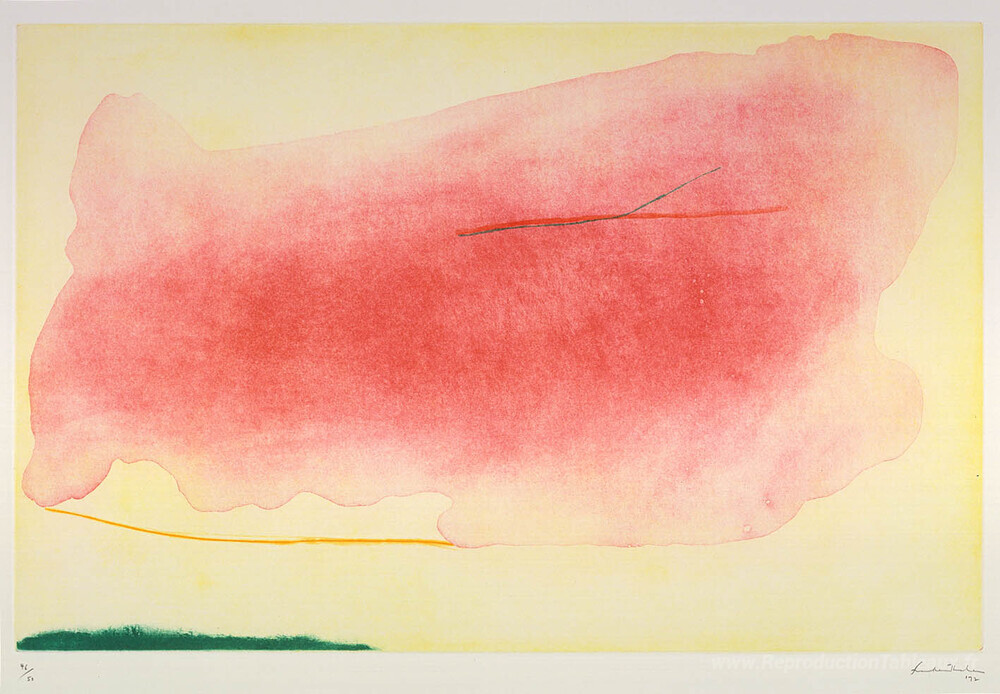 Nous vous proposons une reproduction artisanale sur toile du célèbre tableau 'Népenthès' de Helen Frankenthaler, provenant du Musée de la Reproduction.