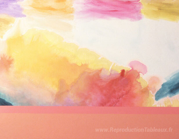 Nous vous proposons une reproduction artisanale sur toile du célèbre tableau 'Naviguer vers l'Inde,' de Ronnie Landfield, provenant du Musée de la Reproduction.