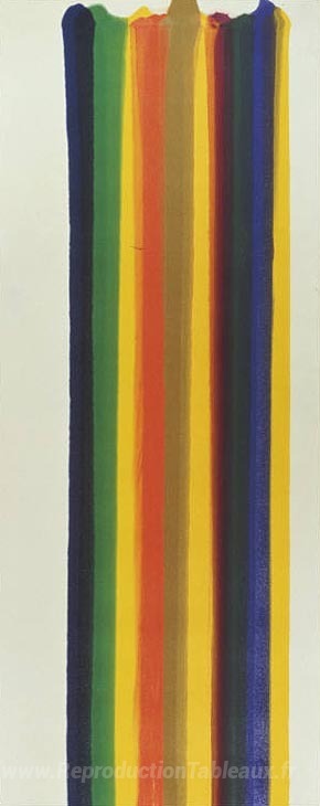 Nous vous proposons une reproduction artisanale sur toile du célèbre tableau 'Numéro 1-82' de Morris Louis, provenant du Musée de la Reproduction.