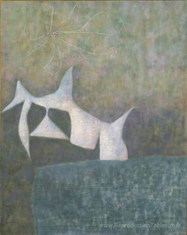Nous vous proposons une reproduction artisanale sur toile du célèbre tableau 'Oiseau blanc' de William Baziotes, provenant du Musée de la Reproduction.
