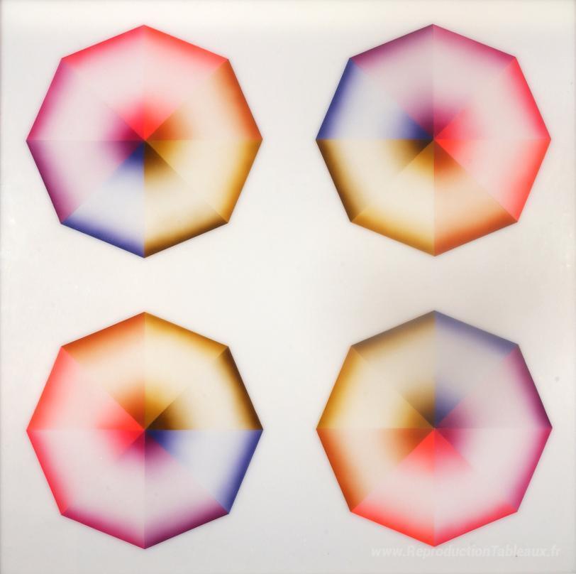 Nous vous proposons une reproduction artisanale sur toile du célèbre tableau 'Pasadena Lifesavers Red # 5' de Judy Chicago, provenant du Musée de la Reproduction.