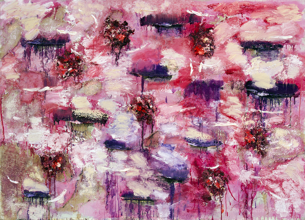 Nous vous proposons une reproduction artisanale sur toile du célèbre tableau 'Passion violette' de Joan Snyder, provenant du Musée de la Reproduction.
