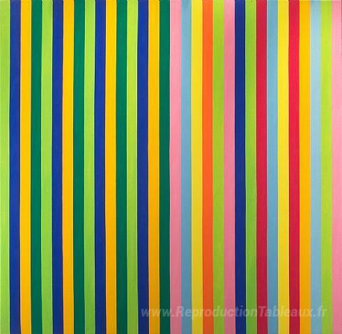 Nous vous proposons une reproduction artisanale sur toile du célèbre tableau 'Peau solaire' de Gene Davis, provenant du Musée de la Reproduction.