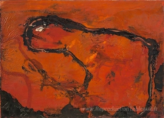 Nous vous proposons une reproduction artisanale sur toile du célèbre tableau 'Pega' de Emil Schumacher, provenant du Musée de la Reproduction.