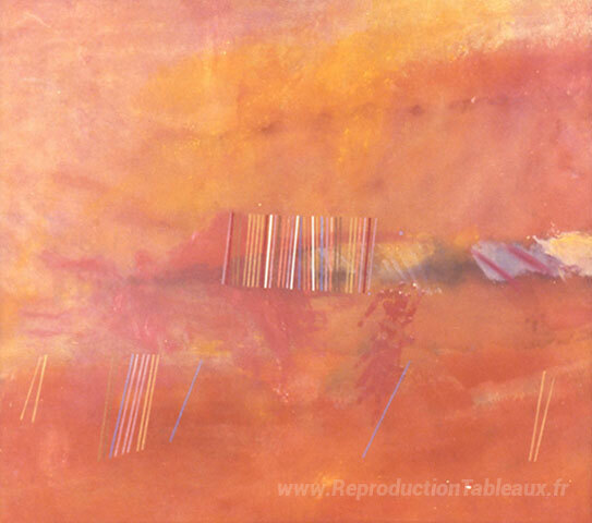 Nous vous proposons une reproduction artisanale sur toile du célèbre tableau 'Peinture de ligne orange' de Ronnie Landfield, provenant du Musée de la Reproduction.