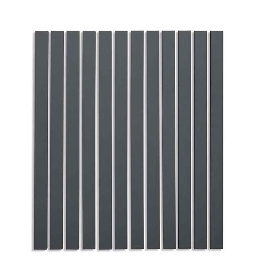 Nous vous proposons une reproduction artisanale sur toile du célèbre tableau 'Peinture en ligne de 12 parties' de Alan Charlton, provenant du Musée de la Reproduction.
