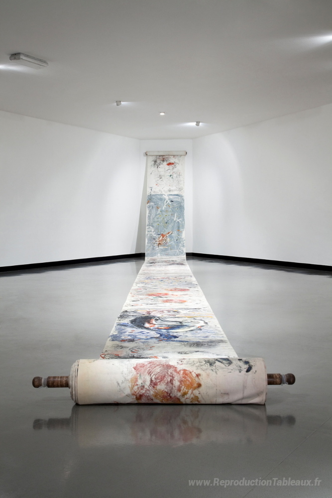 Nous vous proposons une reproduction artisanale sur toile du célèbre tableau 'Peinture industrielle' de Giuseppe Pinot-Gallizio, provenant du Musée de la Reproduction.