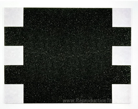 Nous vous proposons une reproduction artisanale sur toile du célèbre tableau 'Peinture lumineuse noire (série de paillettes)' de Mary Corse, provenant du Musée de la Reproduction.