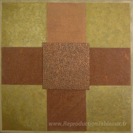 Nous vous proposons une reproduction artisanale sur toile du célèbre tableau 'Peinture - or et marron' de Lygia Pape, provenant du Musée de la Reproduction.
