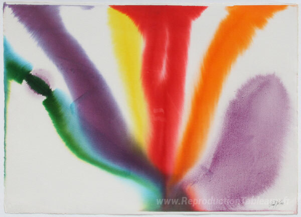 Nous vous proposons une reproduction artisanale sur toile du célèbre tableau 'Phénomènes Roulement de la boussole' de Paul Jenkins, provenant du Musée de la Reproduction.