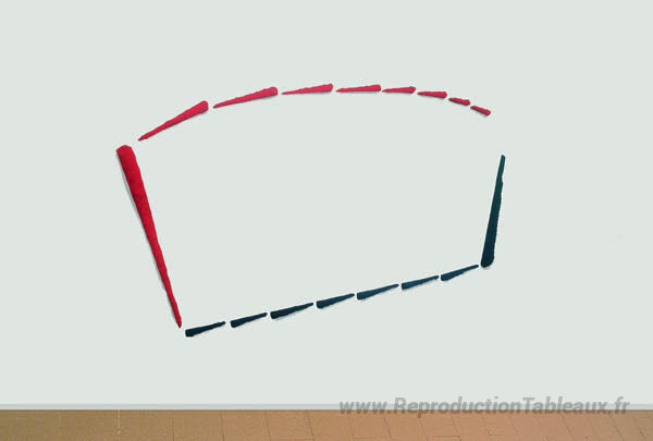 Nous vous proposons une reproduction artisanale sur toile du célèbre tableau 'Pittura R BL,' de Pino Pinelli, provenant du Musée de la Reproduction.