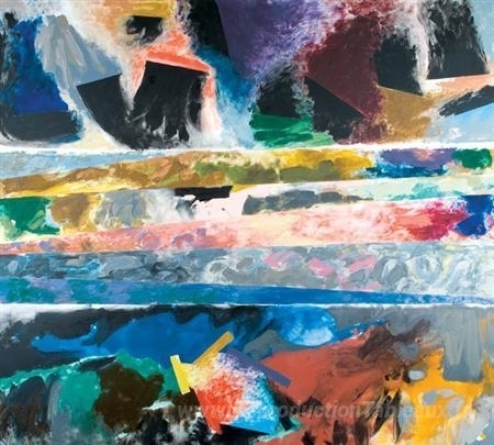 Nous vous proposons une reproduction artisanale sur toile du célèbre tableau 'Plus de terres' de Friedel Dzubas, provenant du Musée de la Reproduction.
