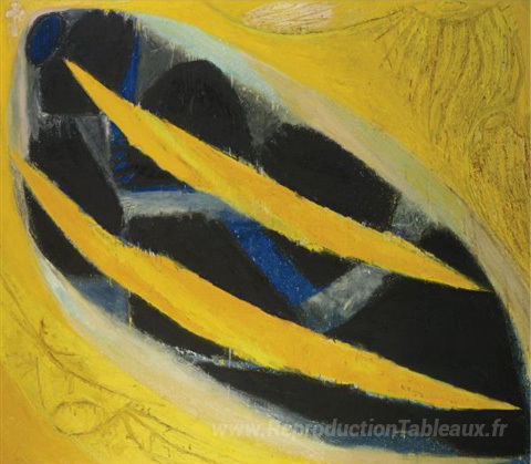 Nous vous proposons une reproduction artisanale sur toile du célèbre tableau 'Présence sombre iii, jaune' de Frank Lobdell, provenant du Musée de la Reproduction.