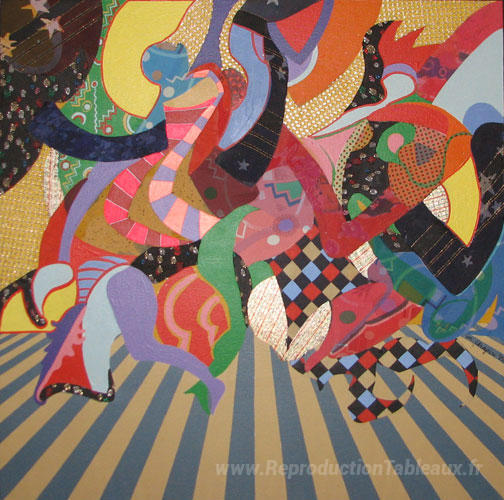 Nous vous proposons une reproduction artisanale sur toile du célèbre tableau 'Présentation 3' de Miriam Schapiro, provenant du Musée de la Reproduction.