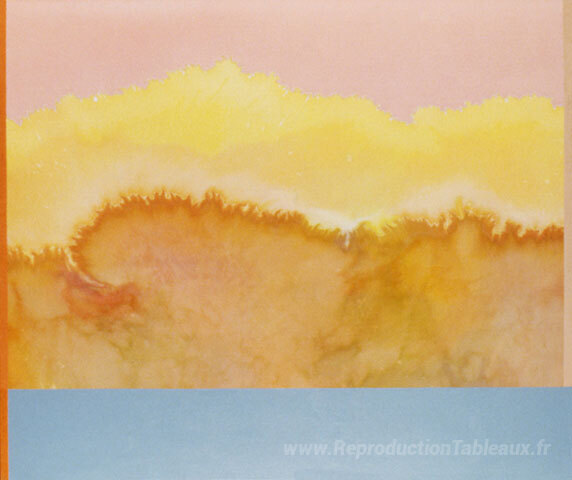 Nous vous proposons une reproduction artisanale sur toile du célèbre tableau 'Prairie turquoise' de Ronnie Landfield, provenant du Musée de la Reproduction.