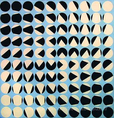Nous vous proposons une reproduction artisanale sur toile du célèbre tableau 'Progressione' de Horacio Garcia-Rossi, provenant du Musée de la Reproduction.