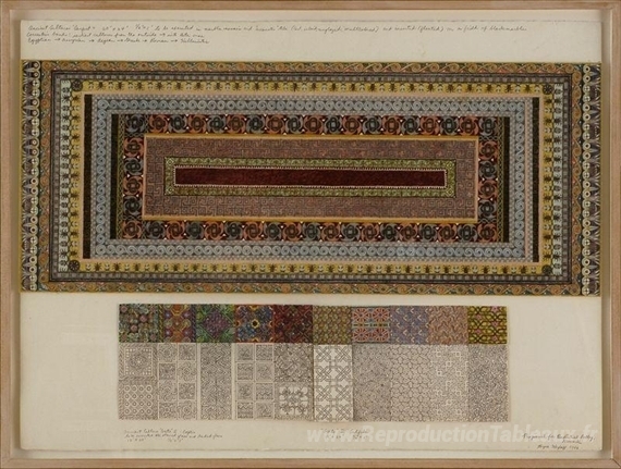 Nous vous proposons une reproduction artisanale sur toile du célèbre tableau 'Proposition de lobby prudentiel / Newark' de Joyce Kozloff, provenant du Musée de la Reproduction.