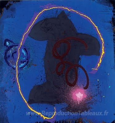 Nous vous proposons une reproduction artisanale sur toile du célèbre tableau 'Quelque chose noir (8.2.90)' de John Hoyland, provenant du Musée de la Reproduction.