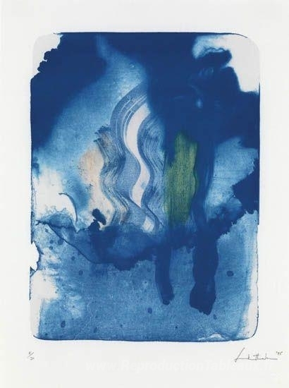 Nous vous proposons une reproduction artisanale sur toile du célèbre tableau 'Réflexions V' de Helen Frankenthaler, provenant du Musée de la Reproduction.