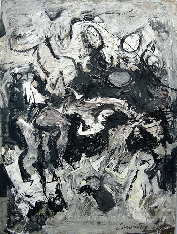 Nous vous proposons une reproduction artisanale sur toile du célèbre tableau 'Résumé sans titre' de Nicolas Carone, provenant du Musée de la Reproduction.