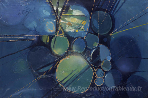 Nous vous proposons une reproduction artisanale sur toile du célèbre tableau 'Résumé vert' de Gebre Kristos Desta, provenant du Musée de la Reproduction.