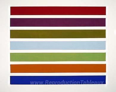 Nous vous proposons une reproduction artisanale sur toile du célèbre tableau 'Rayures murales n ° 3' de Gene Davis, provenant du Musée de la Reproduction.
