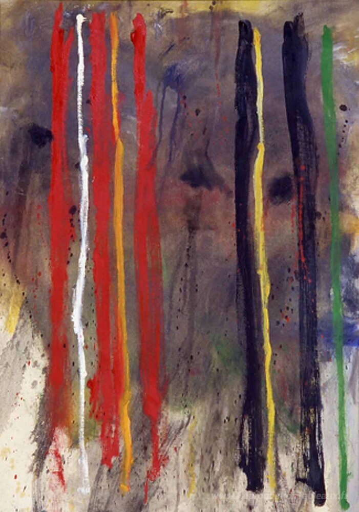 Nous vous proposons une reproduction artisanale sur toile du célèbre tableau 'Rayures' de Gene Davis, provenant du Musée de la Reproduction.