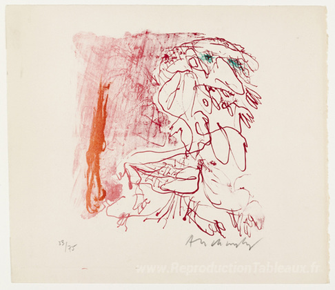 Nous vous proposons une reproduction artisanale sur toile du célèbre tableau 'Recto. Yeux verts, verso. Sans titre' de Pierre Alechinsky, provenant du Musée de la Reproduction.