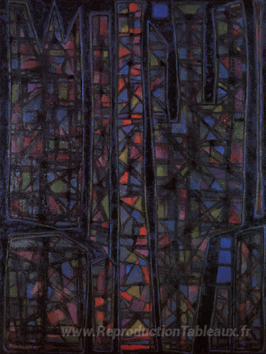 Nous vous proposons une reproduction artisanale sur toile du célèbre tableau 'Recueillement nocturne II' de Alfred Manessier, provenant du Musée de la Reproduction.