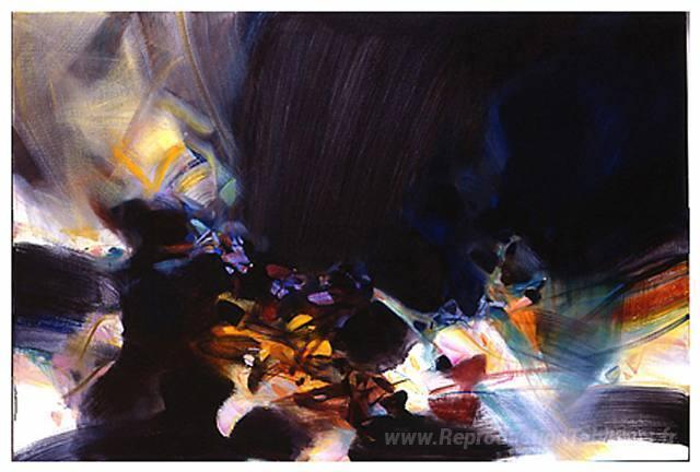Nous vous proposons une reproduction artisanale sur toile du célèbre tableau 'Rinulaires' de Chu Teh-Chun, provenant du Musée de la Reproduction.