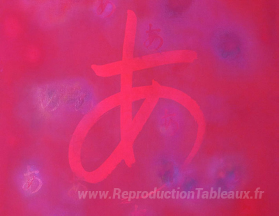 Nous vous proposons une reproduction artisanale sur toile du célèbre tableau 'Rouge A sur rouge' de Shozo Shimamoto, provenant du Musée de la Reproduction.