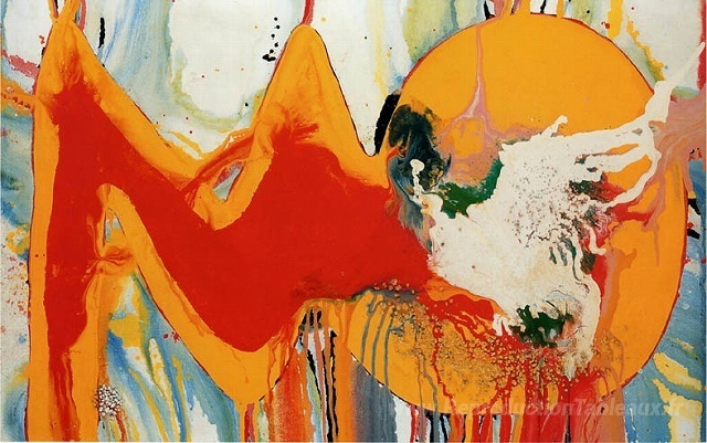 Nous vous proposons une reproduction artisanale sur toile du célèbre tableau 'Rouge et jaune' de Sadamasa Motonaga, provenant du Musée de la Reproduction.