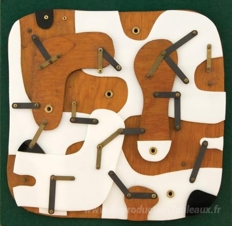Nous vous proposons une reproduction artisanale sur toile du célèbre tableau 'R-SCP-12-69' de Conrad Marca-Relli, provenant du Musée de la Reproduction.