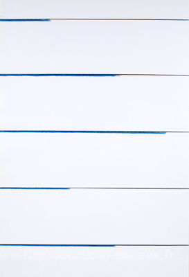 Nous vous proposons une reproduction artisanale sur toile du célèbre tableau 'Rythme profond des lumières' de Kishio Suga, provenant du Musée de la Reproduction.