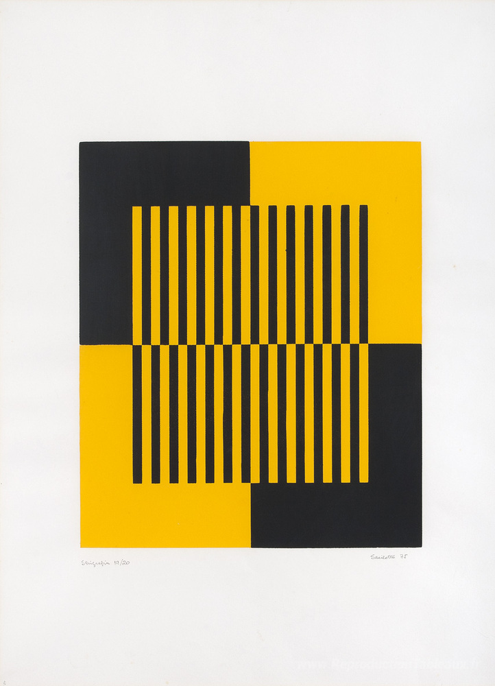 Nous vous proposons une reproduction artisanale sur toile du célèbre tableau 'Sérigrafia' de Luis Sacilotto, provenant du Musée de la Reproduction.