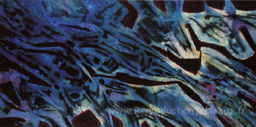 Nous vous proposons une reproduction artisanale sur toile du célèbre tableau 'Sanctuaire des poissons' de Alfred Manessier, provenant du Musée de la Reproduction.