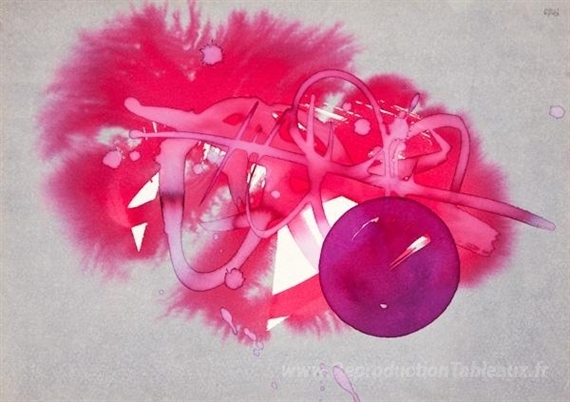 Nous vous proposons une reproduction artisanale sur toile du célèbre tableau 'Sans titre (cercle violet)' de Luis Feito, provenant du Musée de la Reproduction.
